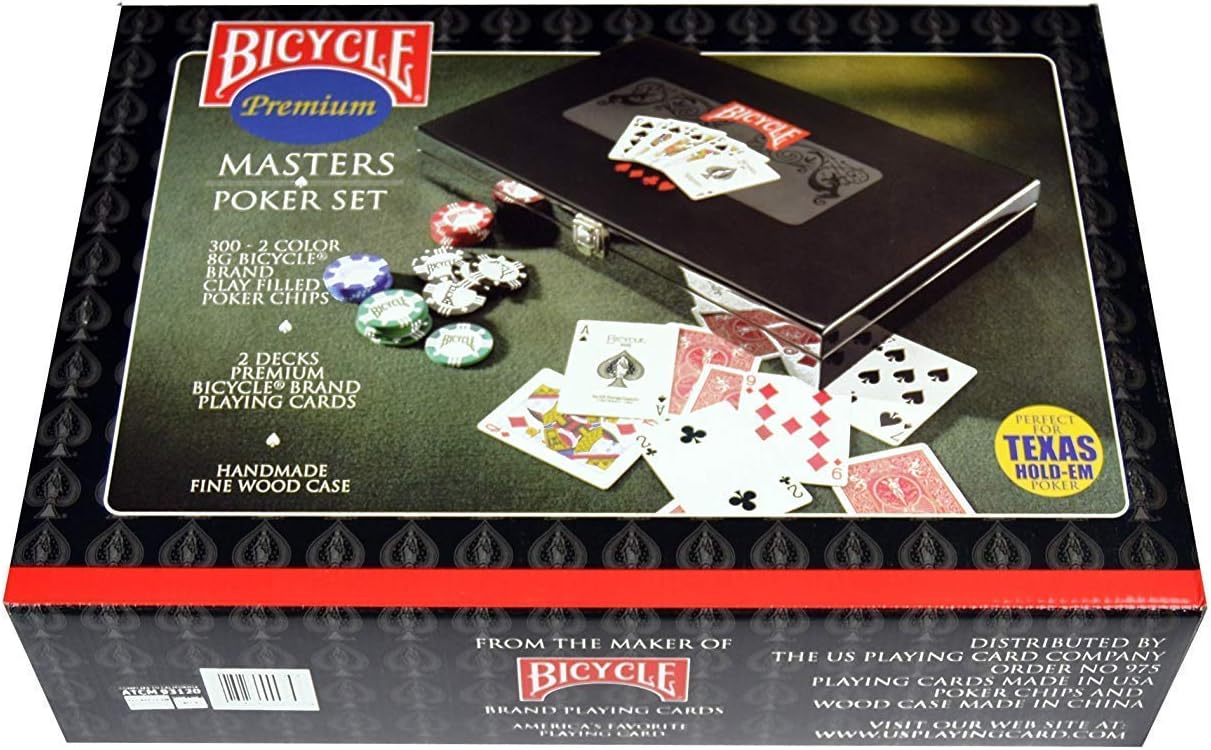 Bicycle premium masters poker set. Premium 8 gram clay poker chips with tray. The bicycle mega masters poker set is a premium poker set for the poker enthusiast. The bicycle mega masters poker set is a premium poker set for the poker enthusiast. Set includes 100 two color chips.